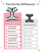 Getting the right fit makes all the difference for safe, comfortable walks. Use our simple sizing guide to measure your pup’s neck and chest, then match their measurements to our chart for the best fit. Because every brand sizes differently, we recommend double-checking your pup’s measurements before ordering to ensure their new Korriko harness feels just right.